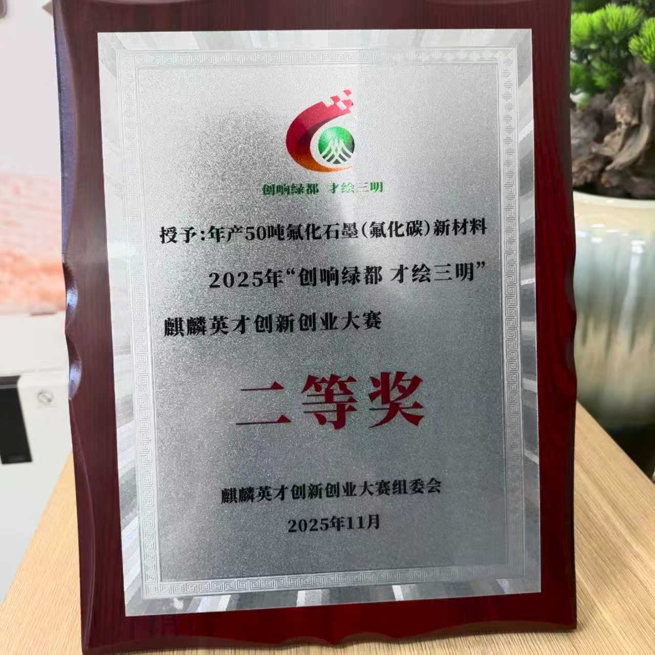2025年11月5日,由中共三明市委人才工作领导小组办公室、中国海峡人才市场主办的“创响绿都 才绘三明”麒麟英才创新创业大赛决赛圆满收官。经过多轮激烈角逐,福建MG不朽情缘科技有限公司凭借“年产50吨氟化石墨(氟化碳)新材料”项目,以扎实的技术实力与显著的市场前景脱颖而出,成功摘得项目组桂冠,荣获大赛二等奖。